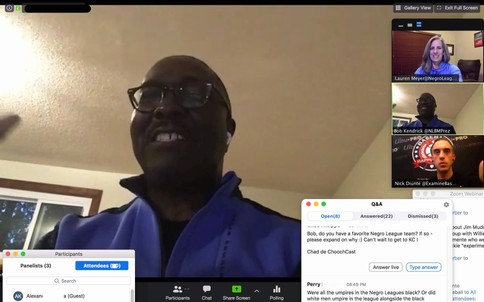As our country shut down in response to Covid-19 all of our upcoming programs were put on hold or postponed indefinitely. We knew that meant we needed to get to work to figure out how to continue to inspire people and shine the spotlight on the Negro Leagues. It was not going to be possible for us to bring the program to communities and organizations in person for the immediate future. What we decided to do was dig in and research and develop a way to keep moving forward. We took strength from the resilience of the players we've had the chance to get to know and admire. The first place we reached out to was The Negro Leagues Baseball Museum. Their doors were closed and they had very little source of revenue. I called Bob Kendrick, The NLBM president, and asked him if he'd be interested in joining us as a panelist if we created an online version of our program that we would use to host a benefit to raise funds for them. He said yes without hesitation. The next few weeks weren't easy but we had a goal and nothing but time on our hands.